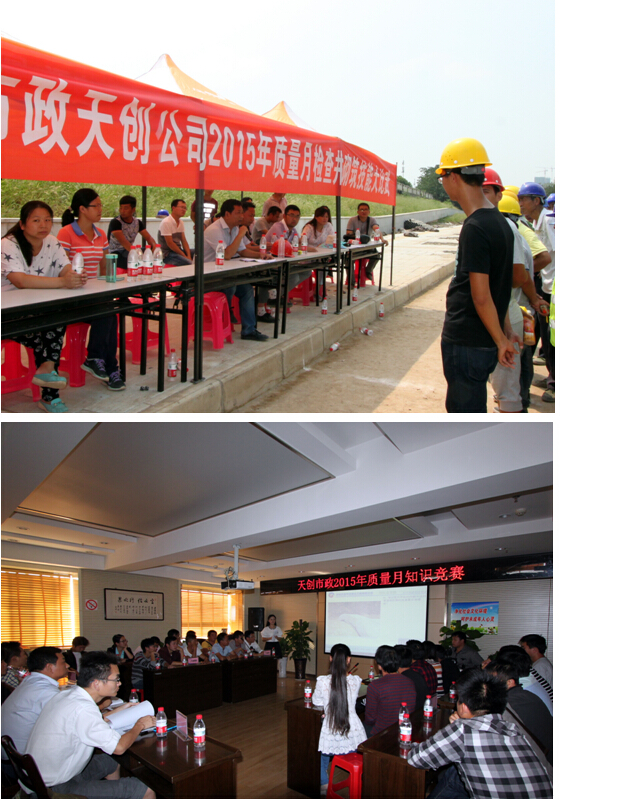 以“迈向质量时代,建设质量强国”为主题,天创公司开展了精细化施工培训、检查井砌筑技能大比武、规范学习考试、精细化施工征文、质检行为技能大比武、知识竞赛等质量月系列活动。其中9月9日开展的检查井砌筑大比武,规范了一线员工检查井砌筑技术;10月11日开展的知识竞赛,从实际出发,通过收集整理日常施工中存在问题并由一线员工找出问题、解决问题,强化了一线人员的质量意识。通过开展这些活动,员工对施工技术规范有了更深刻的理解、对工地常见质量问题及处理方法有了更系统的学习。
