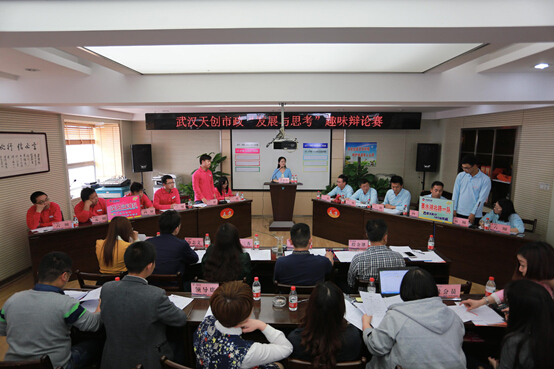 4月27日,武汉天创市政在闽东国际3A-26楼会议室开展了以“发展与思考”为主题的趣味辩论赛,天创市政支部领导班子一行参加了活动,并与两名由一线项目部推选出的新员工共同担任比赛评委。