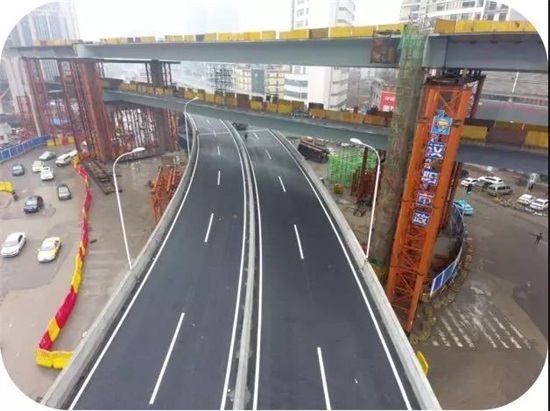宝丰路硚口路快速化(建设大道~京汉大道)改造工程起于京汉大道,止于建设大道(全长约1.44千米),设有宝丰路四层互通立交一座,涉及解放大道改造长度约1.05千米。另外,位于解放大道路口东南象限的现状地下人防工程需同步改造。工程共157个墩柱,有花瓶型双柱墩、门型双柱墩、双柱墩、门型单柱、独柱花瓶墩等几十种不同的结构形式,形式变化多端,其增添了城市的韵律。且高墩柱高墩柱结构砼内实外光,平整度、垂直度最大偏差1.5mm,观感质量好。四层立交桥规模宏大、线性流畅、雄伟壮观,钢结构与现浇预应力砼箱梁、地面道路等多种结构形式与周围环境相得益彰。工程对硚口路道路进行拓宽,增加道路绿化,美化人行道,即解决了硚口路的道路拥堵,又为武汉市迎接军运会增添了美丽。