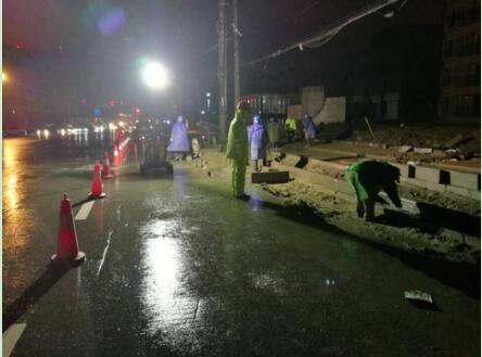 2017年1月5日中午13:00,汉阳市政二公司董事长程强召集支部班子、全体项目经理及部门负责人召开紧急会议,要求集全公司之力全面突击汉阳大道主体施工任务,确保工程按期完工。按照会议要求,公司分管生产的总经理助理兼工程部部长曹元鑫,及分管质量安全的副经理肖三秀轮班值守,24小时蹲点现场施工;各项目部投入人力、物力,全力支持汉阳大道的生产建设;各职能部门按划分的片区,派专人全程跟踪施工进程。会议还对工程各区段的施工任务、目标工期、人员机械及区段负责人等作了明确的安排部署。与此同时,汉阳市集团公司也高度重视,给予了强有力的支持。副总经理邢荣斌带领机关各职能部门负责人白天在现场监督指导,晚上开会总结部署,力争打好这场攻坚战。