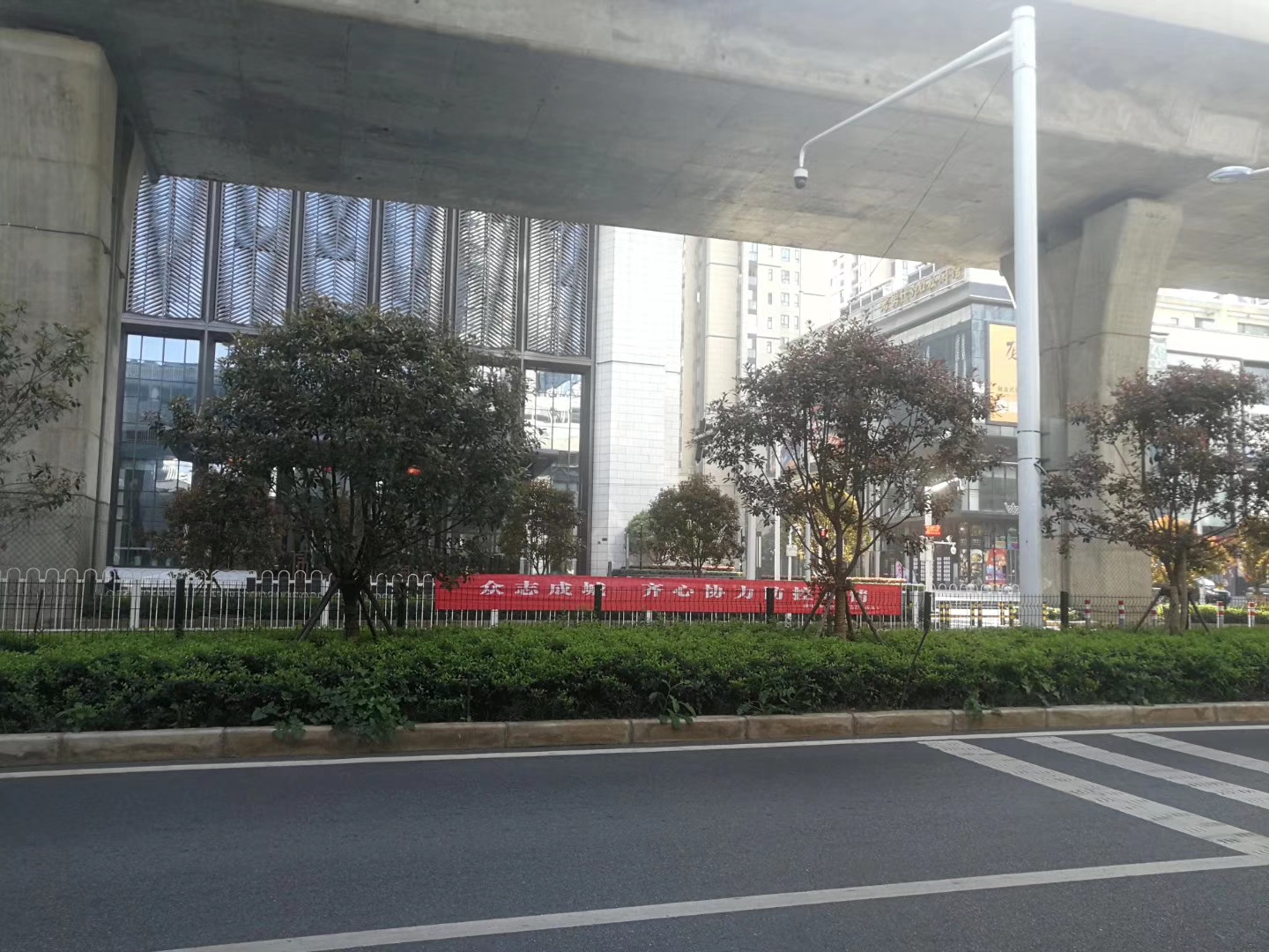 两个月的时间过去了,宝丰路的绿植已是郁郁葱葱,马路隔离带上挂着抗疫的横幅,平整的沥青道路被冲洗的格外干净,人行道上行人很少,马路上车辆也不多,街边上的粉樱正开,桃花也刚刚盛开过了,一幅生涩而又蕴含了生机的画面。